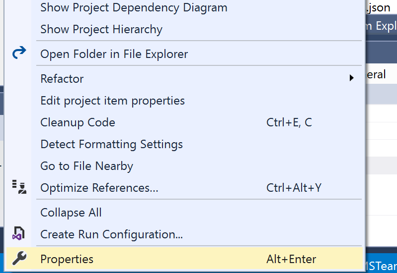 Now we need to specify our information in the static tabs section. Therefore we need to fill in the information in the corresponding section, but wait… it looks like MS Teams only accepts HTTPS endpoint in it’s manifest. This means that we need to start our project on an HTTPS endpoint. We can change this in the settings of the project.